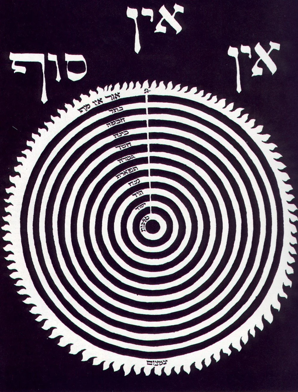 In the beginning only god existed, the Ein Sof, the unthinkable godhead. God created from nothing—Ayin—the torah says and the Kabbalists take this literally so that the Ein Sof godhead is itself a void and pure nothingness even while being the absolute plenary source of all creation; it’s the extreme form of the apophatic god of negative theology, remaining totally indifferent and prior to any representation whatsoever.